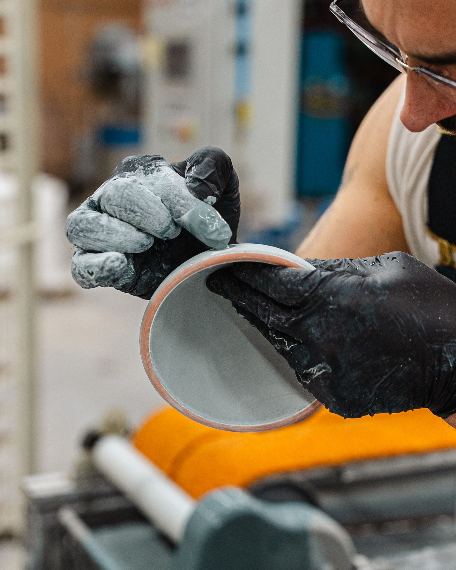 “Cosmos is a reactive glaze, which is a double-dip process…it takes significantly more work to produce than our core lineup of glaze colors. You start by dipping the pot in an underglaze. Then you dip it into water to rehydrate the glaze before glazing it again. There’s quite a bit more time spent hand-finishing each pot.”