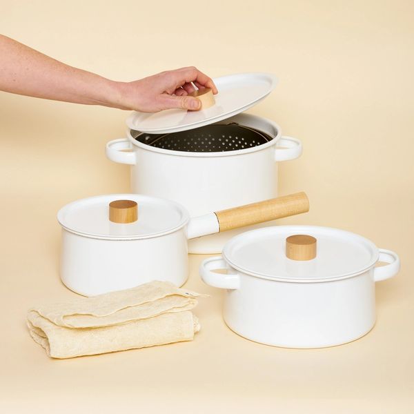 This three-piece Japanese cookware collection designed by Makoto Koizumi is what minimalist kitchen dreams are made of. And, the Mujun kitchen towel is on us!